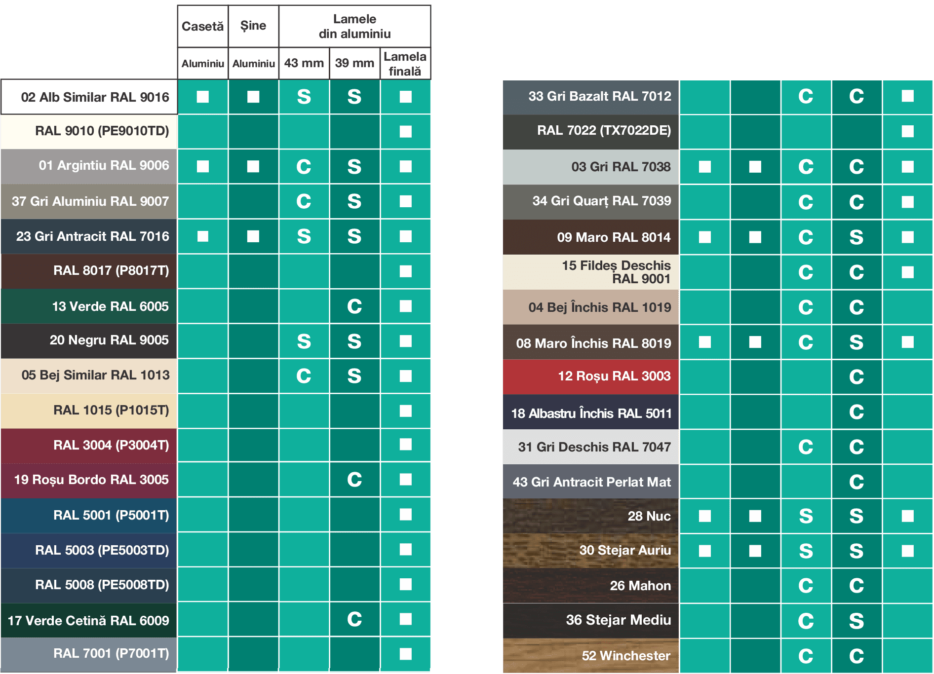 - ΔR = 0,12 (m²K)/W para las lamas de 39-43 mm - APEX-T con mosquitera (para las cajas de 180mm și 205mm)
