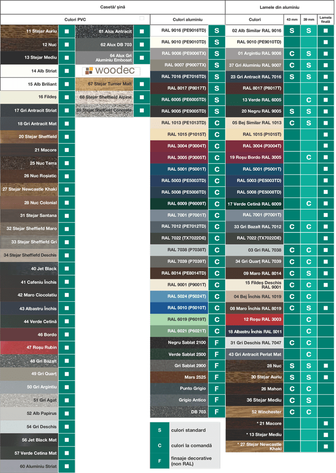 Los elementos de persiana, rieles y lamas finales están disponibles en toda la gama de colores de la paleta de colores PVC QFORT.